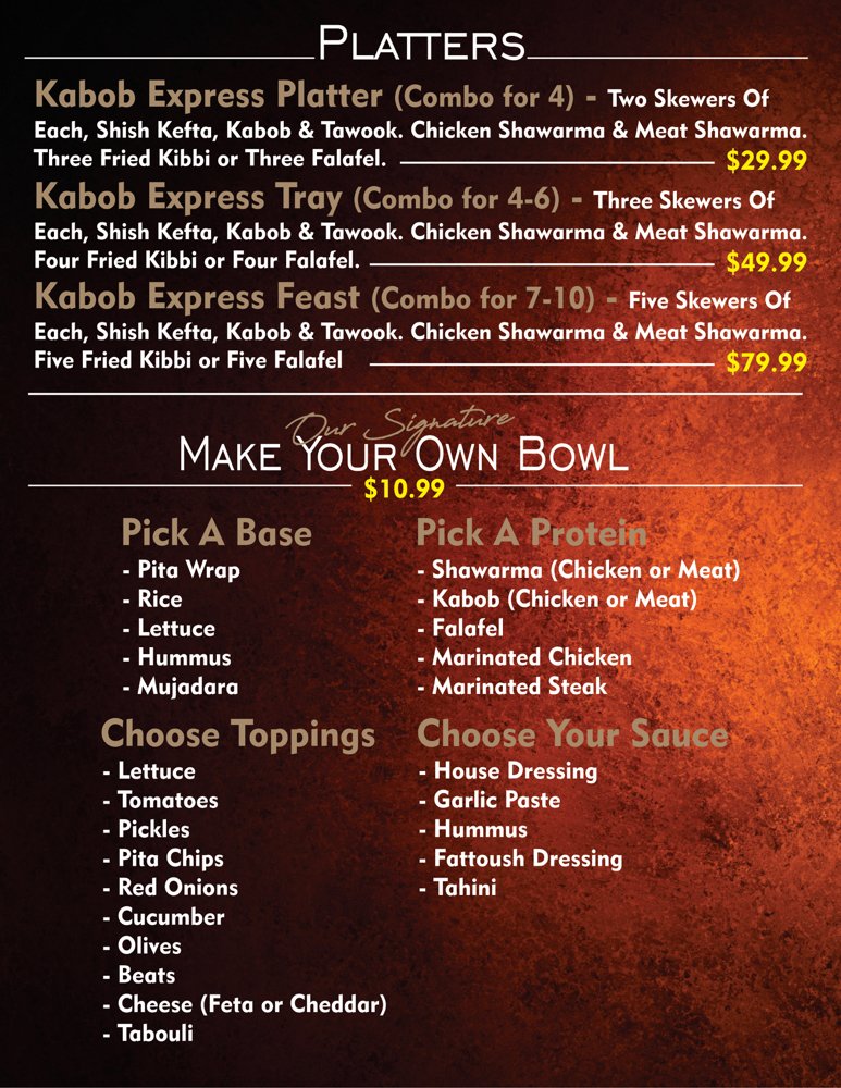 For salad lovers, options like the refreshing Fattoush and Greek Salad provide a perfect balance of textures and tastes. The crowd favorite, Make Your Own Bowl, invites customization, ensuring your meal is uniquely yours.